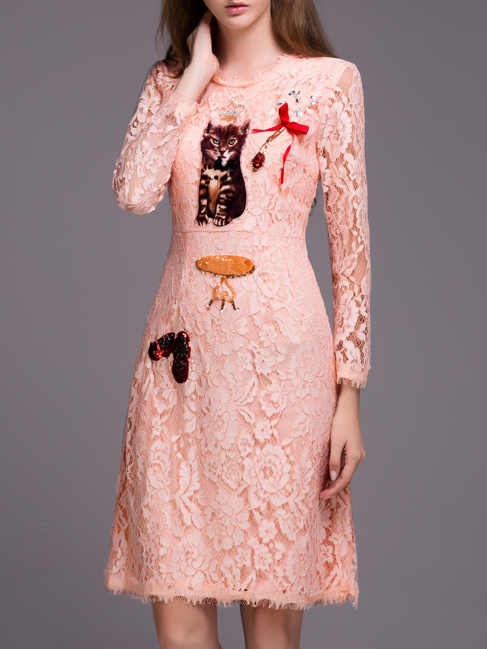 BUY Pink Cat Applique Pouf Beading Sequined Lace Dress NOW