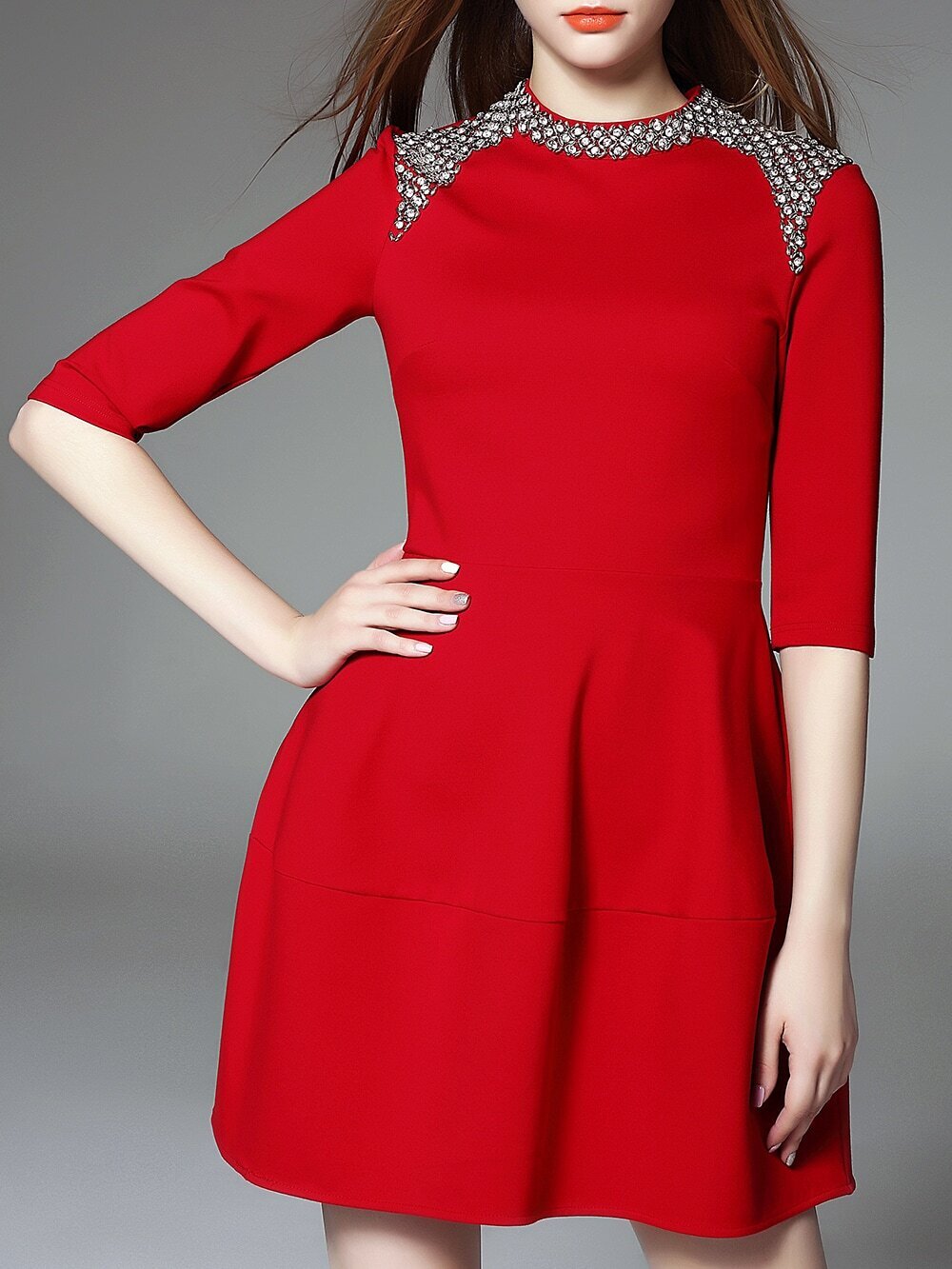 If You search Beading then Red Round Neck Half Sleeve Beading Dress is best choice, Buy it now for Price is 65.34