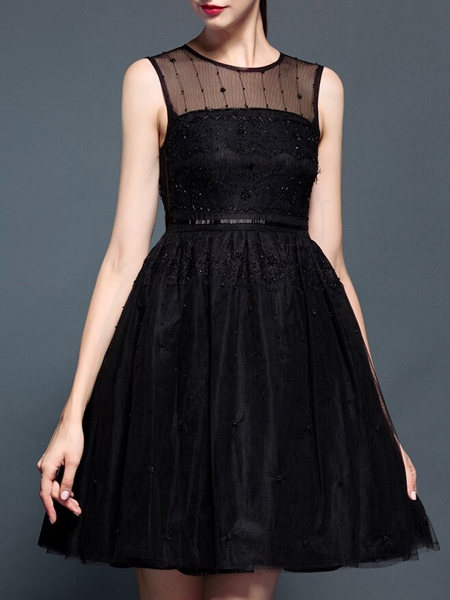 If You search Beading then Black Organza Beading Contrast Lace A-Line Dress is best choice, Buy it now for Price is 89.99